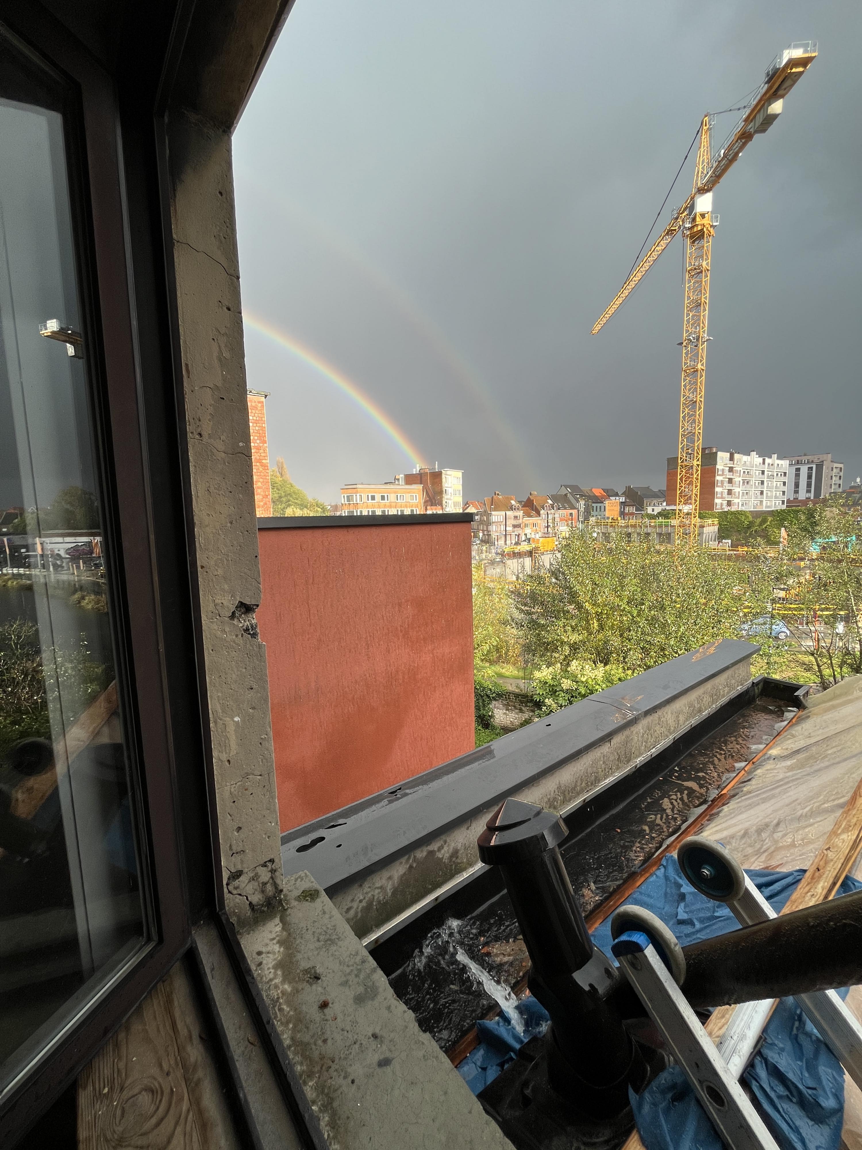 Toen het weer eens wat te hard regende heeft m'n vader nog gezorgd dat het wat minder zou binnen regenen in de badkamer. Achteraf gezien was het misschien toch geen goed idee om de dakpannen er al zo vroeg af te halen, maar het zorgde wel dat de isolatie naar het containerpark kon en de dakpannen naar Oostende. You win some, you lose some 🤷♂️