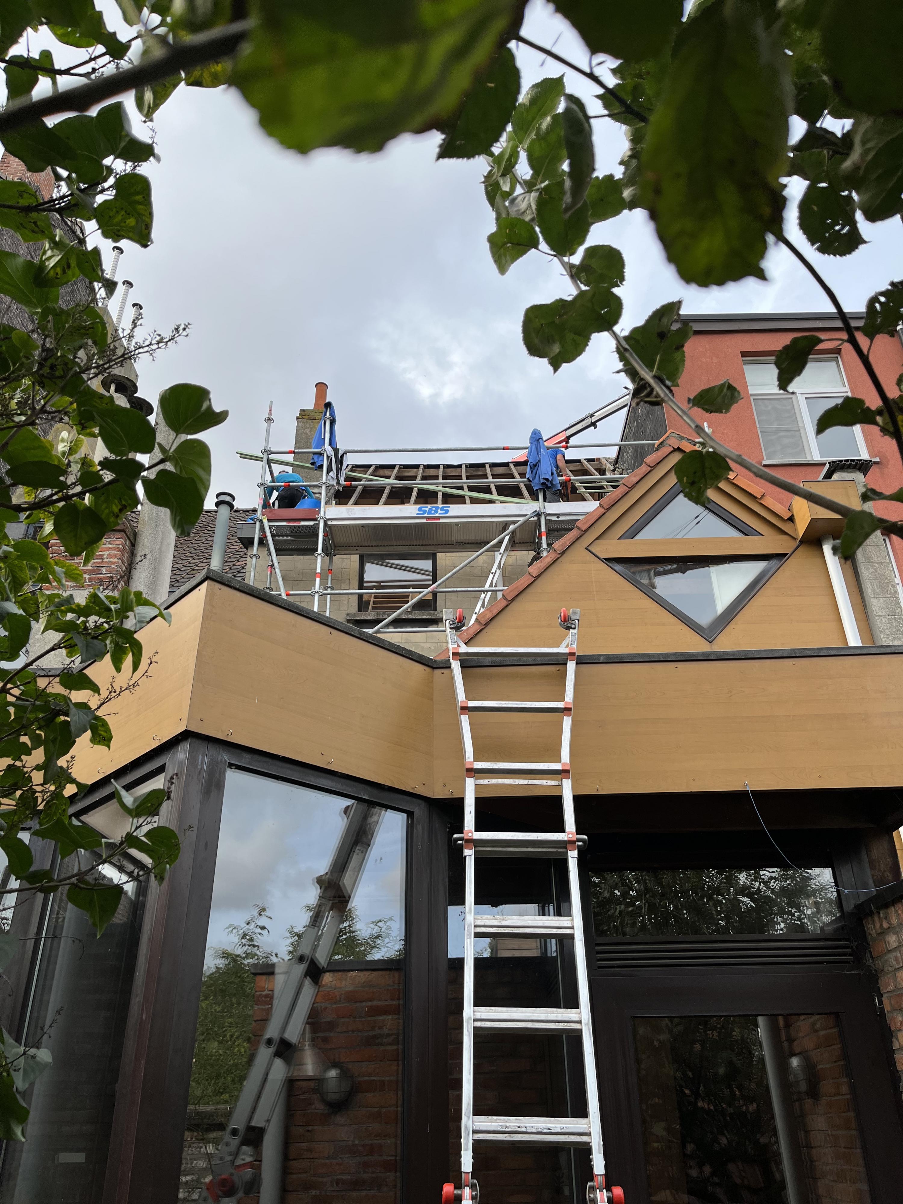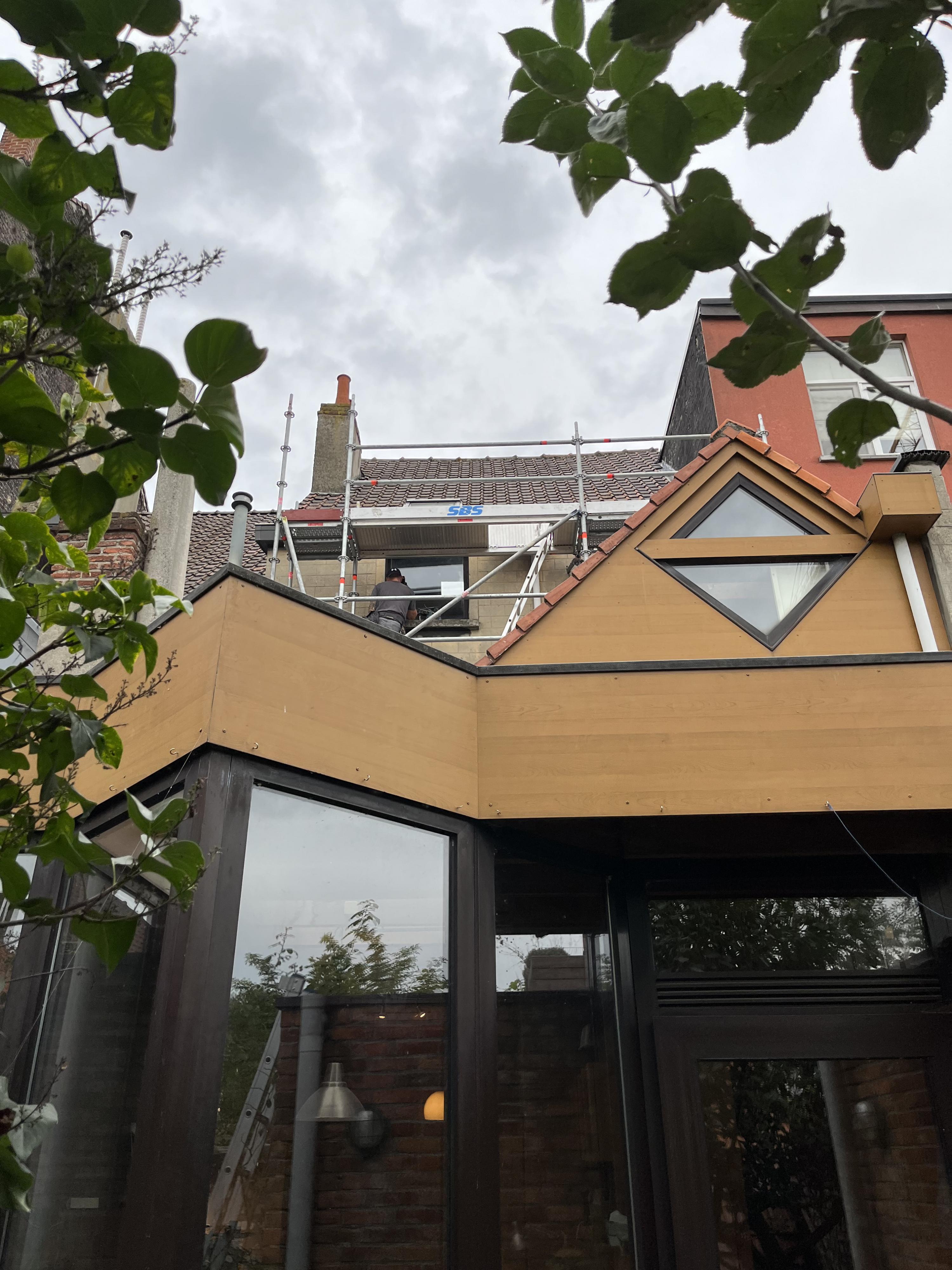 Opdat we de gevels langs buiten zouden kunnen isoleren moeten de dakgoten wat verder uitsteken.