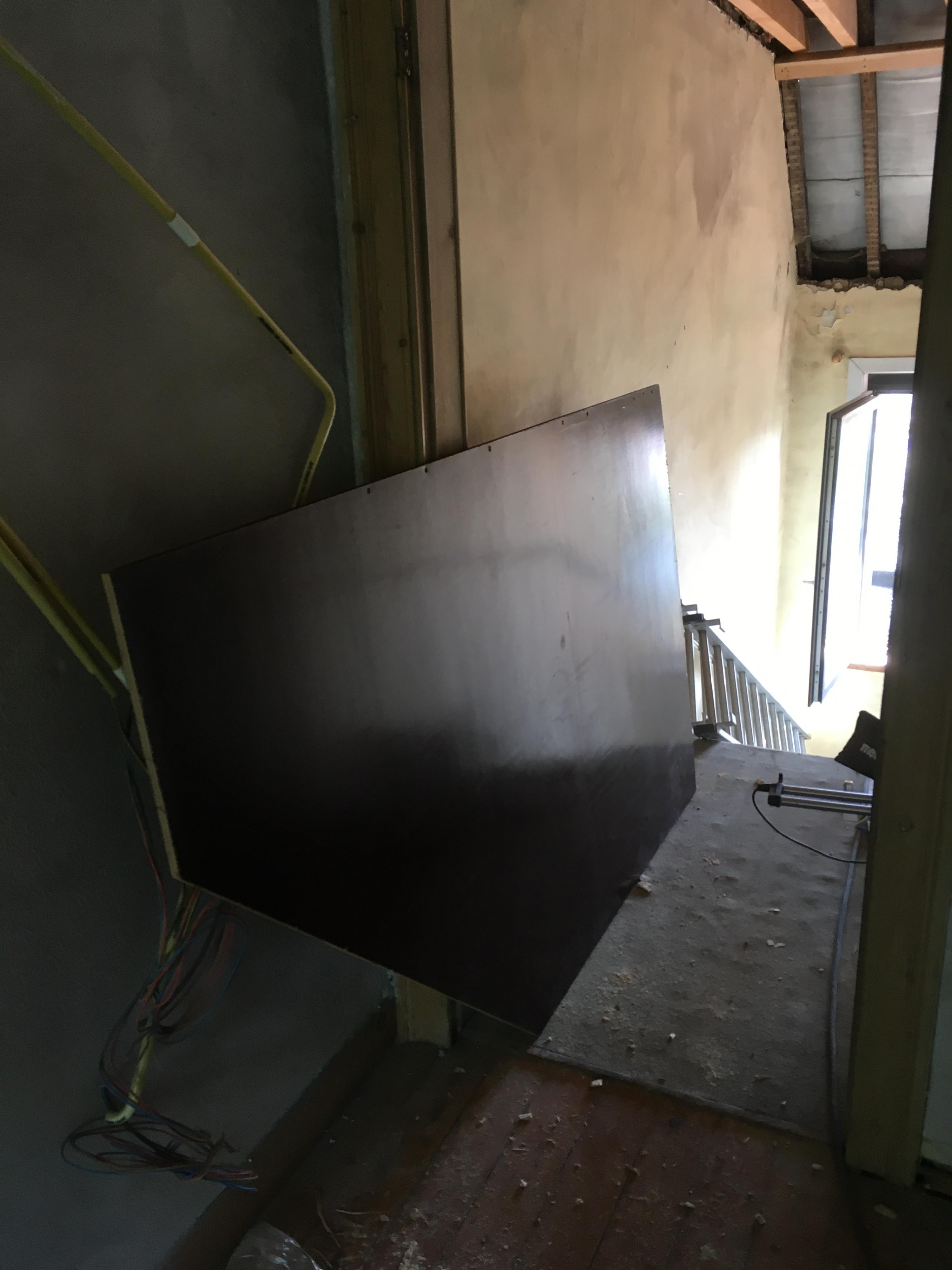 Samen met Michiel braken we het eerste deel van de rekken af en een oude betonplex-scheidingswand tussen de WC en de badkamer kon worden hergebruikt.