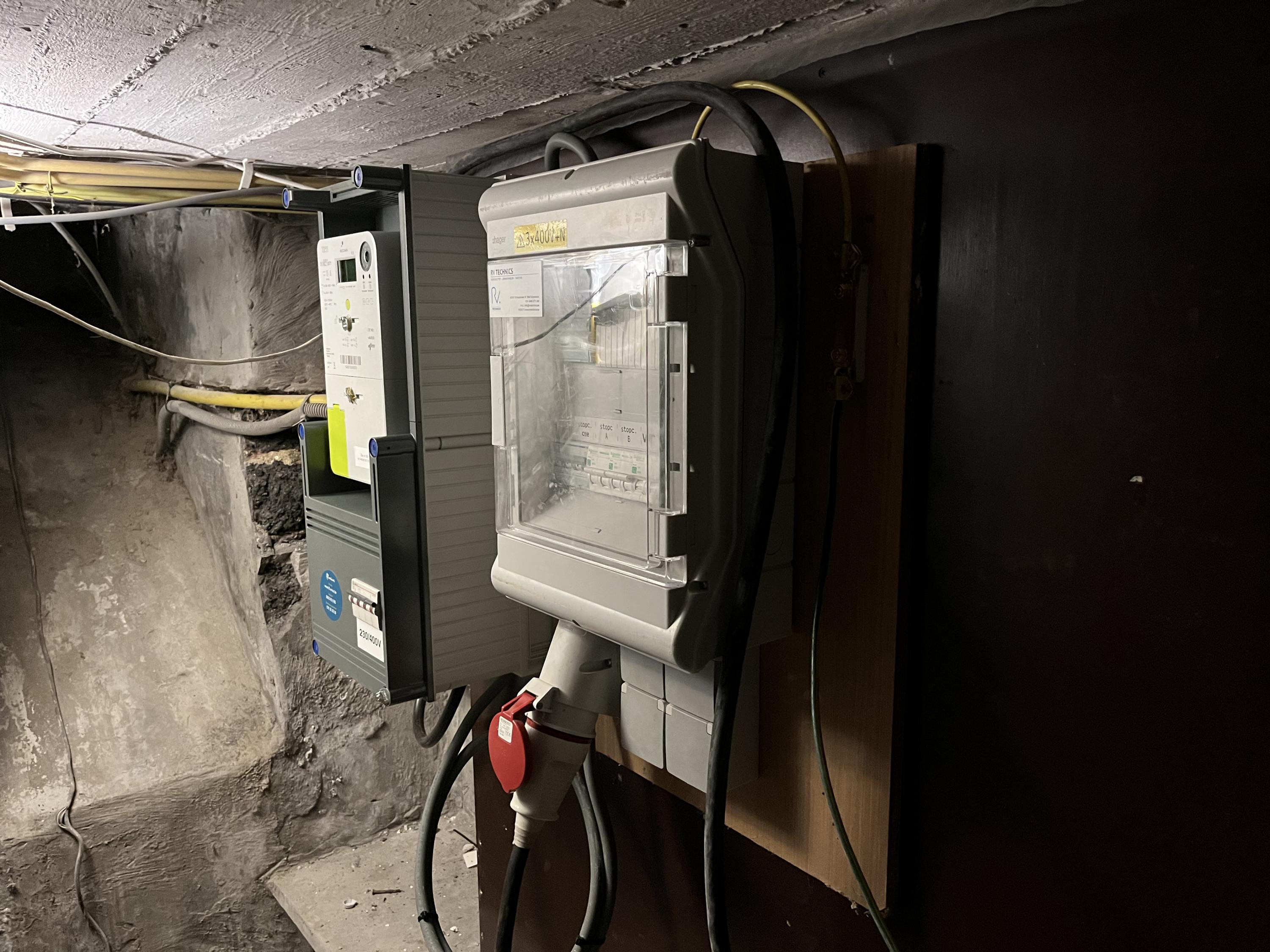 Het eerste deeltje van de nieuwe elektrische installatie is een feit: de digitale teller! Er hangt nog een voorlopige werfkast aan, maar het voelt toch weer een beetje als "opbouwen"